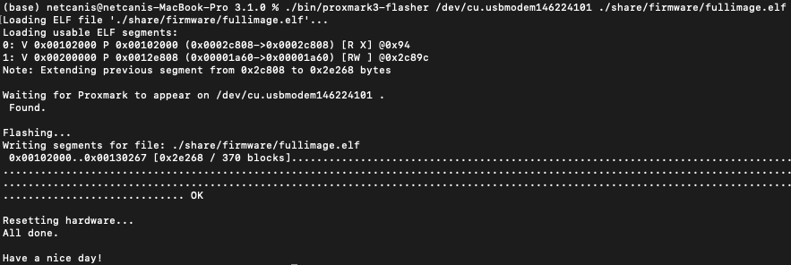 ./bin/proxmark3-flasher /dev/cu.usbmodem146224101 ./share/firmware/fullimage.elf