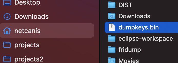 4. 홈 디렉토리에 ‘dumpkeys.bin’파일이 생성된다.