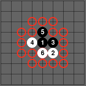 1번 빈 자리 검색 시 아래 그림과 같이 돌이 놓여진 주변 빈자리만 검색하여 반환되도록 한다.