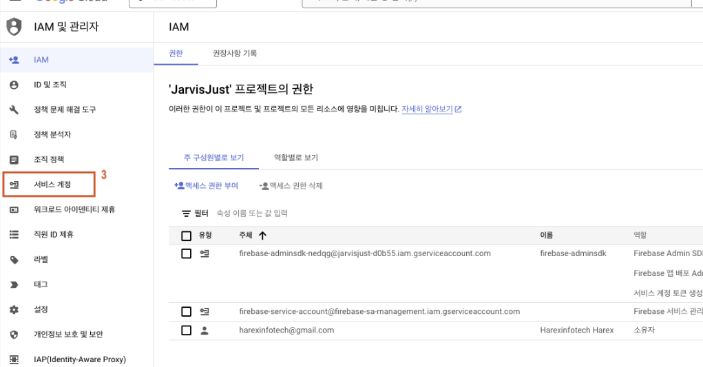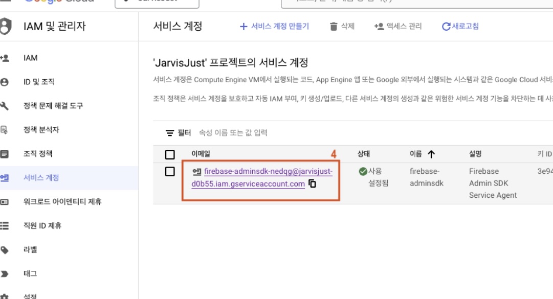 3번 서비스 계정 클릭4번 서비스 계정 클릭
