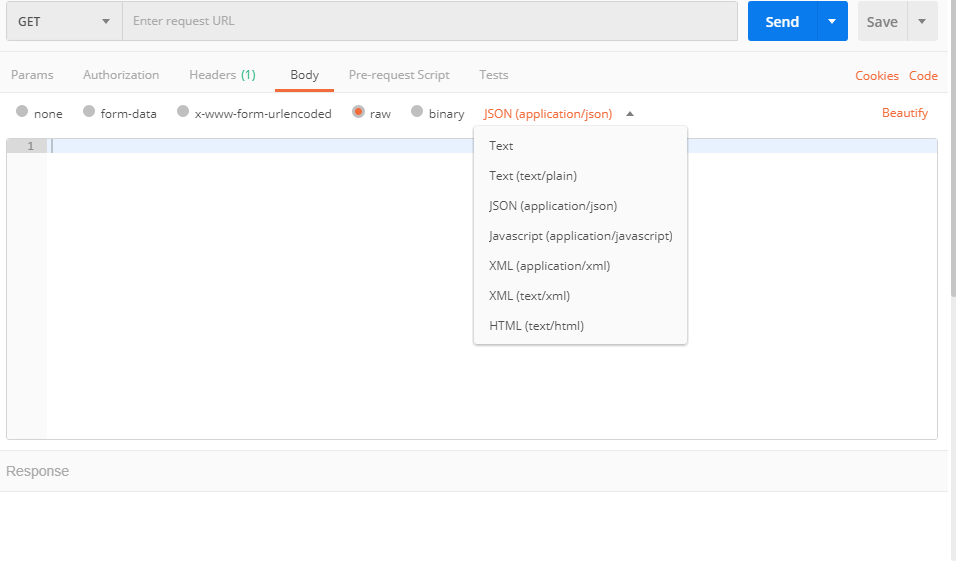 REST 클라이언트 앱인 Postman은 다음과 같은 Content-Type을 제공한다.