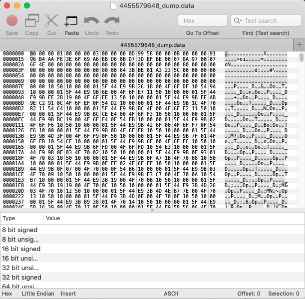 맥에서 사용할 만한 바이너리 에디터로 data파일을 열어보았다.