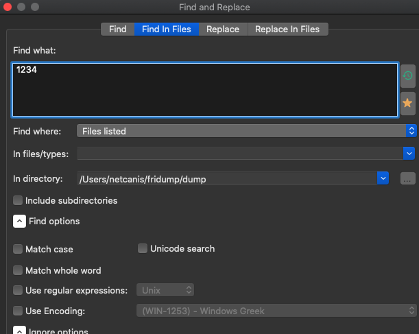 폴더내 모든 파일들을 열어서 바이너리를 검색할 수 있는 툴(Ultraedit)을 사용해야한다.