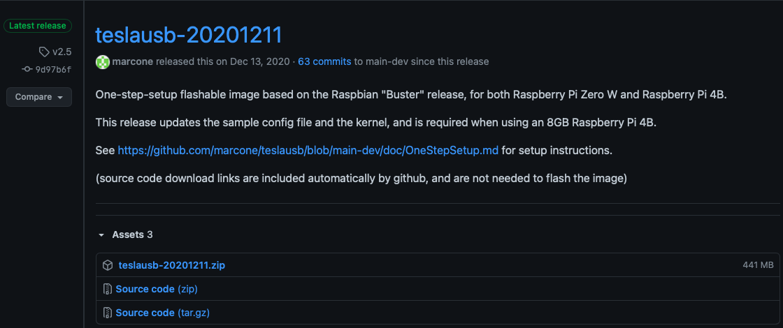https://github.com/marcone/teslausb/releases/tag/v2.5